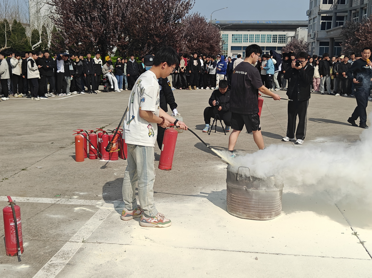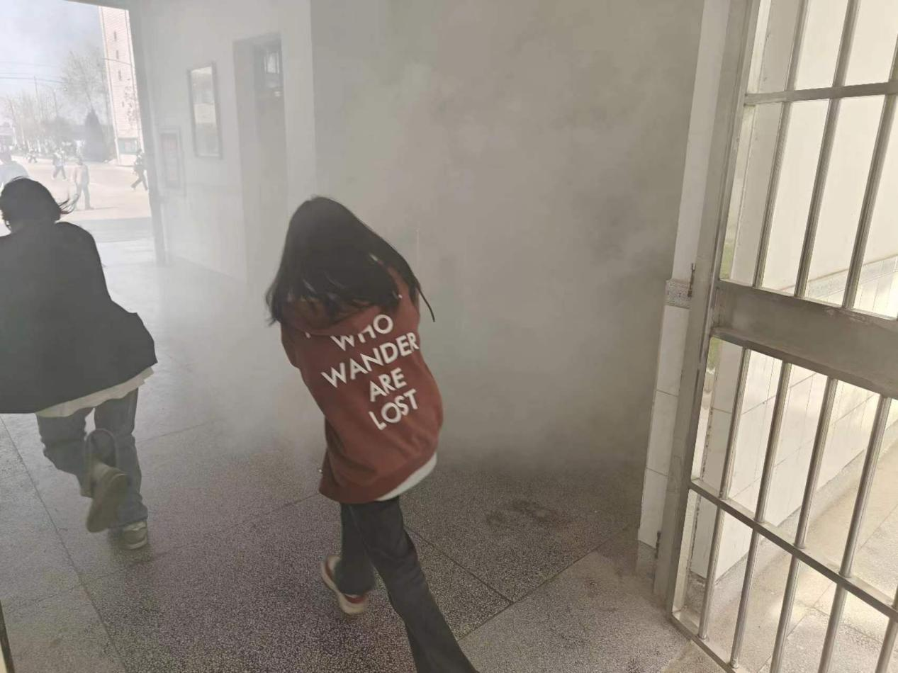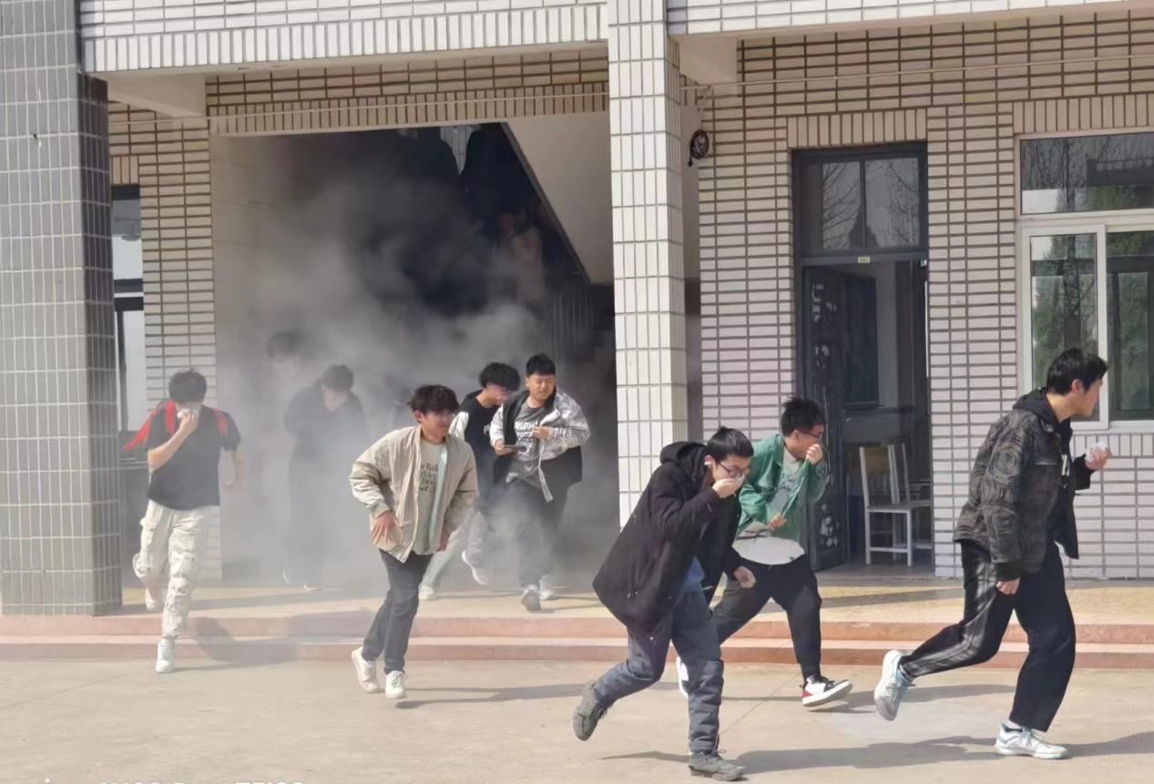 随着紧急警报的响起,疏散逃生演练活动正式开始。在教学楼、信息中心、宿舍区的学生们弯腰、捂住口鼻,按既定路线,快速、有序地撤离到安全地带。整个疏散过程安全、有序,达到了预期的演练效果。疏散演练完毕后,保卫部门现场演示和指导了灭火实操练习,并邀请各班安全委员和部分教师使用灭火器进行灭火训练。
