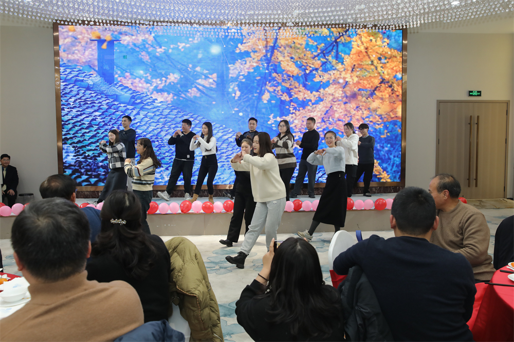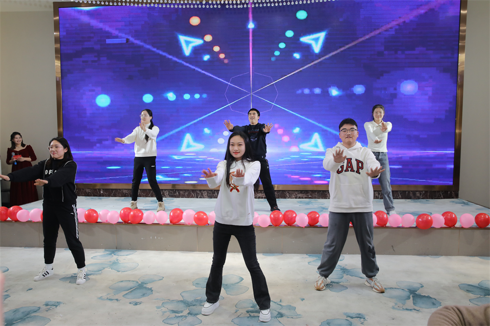年会现场,热火朝天。学工处全体老师的舞蹈《最亲的人》表达感恩之情,对亲人思念。基础教学部的舞蹈《多财多亿》共祝大家在新的一年里财运亨通、财源广进。
