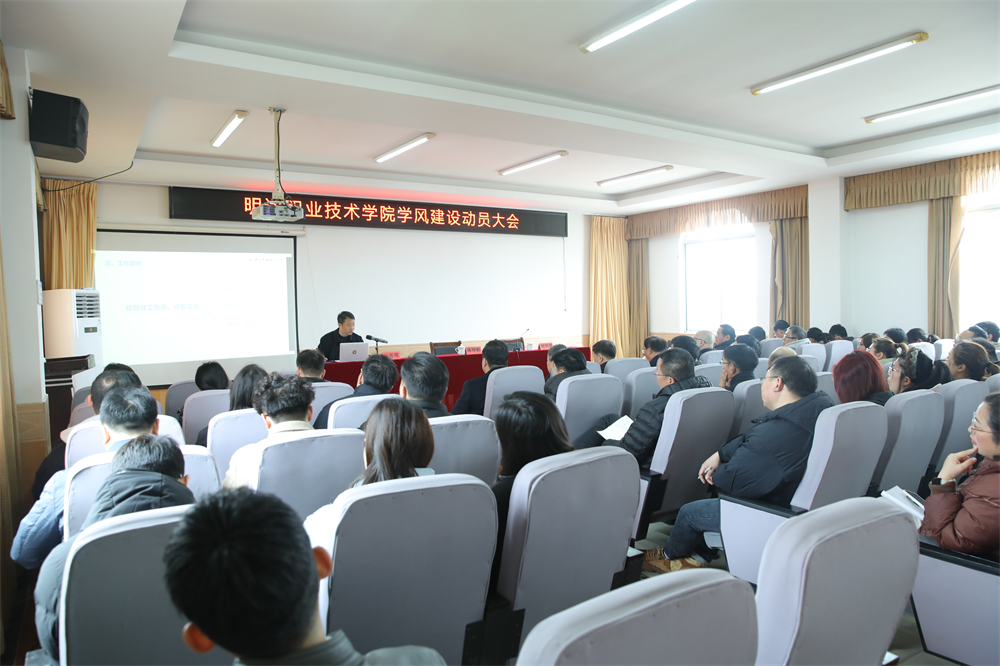 蒋德勤作学风建设动员讲话,他强调:一要深刻认识学风建设的重要意义。学风建设是提高人才培养质量的关键环节和重要保障,是我们主动适应经济社会发展的内在需要,是加快学校内涵发展的迫切需要,是促进学生全面发展的必然要求。二要深刻认识学风建设中存在的问题。学校的学风总体是向上的,大多数学生学习目的明确,学习态度端正,有理想抱负。但我们应该清楚的看到,我校学风建设存在的薄弱环节,在影响和制约着学校事业的高质量发展,影响整个学校的学风和声誉。三要着力构建学风建设长效机制。一是齐抓共管,形成合力。学风建设需要教学、管理、服务部门的齐抓共管,通力协作,构建学生、班级、学院、学校四位一体联动机制。二是强化担当,严格执行。需要各部门的高度重视、引导推动,更需要教师和党政管理干部的全面理解、共同努力。强化责任担当,着力构建以教育引导、严格管理、制度保障、监督检查相结合的学风建设工作体系。三是凝炼特色,打造品牌。以人才培养为根本任务,以改革创新为动力,积极应对学风建设的新挑战、新问题,逐步探索学风建设的独特模式和成熟机制,打造能够反映我校办学定位和学生特点的学风建设特色。四是加强领导,确保实效。学风建设涉及学校工作的各个方面,必须切实加强组织领导。学校成立学风建设工作领导小组,负责全校学风建设的统筹谋划,形成体制机制科学、完善的格局。